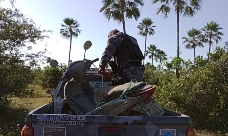 A recuperação da motocicleta ocorreu a partir de uma informação de que o veículo estava dentro de um matagal na região do riacho das Pintadas.