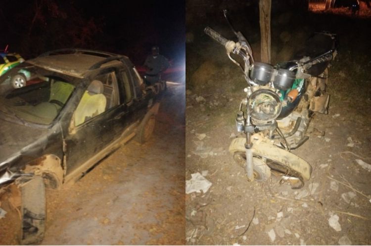 Duas pessoas em uma motocicleta ficaram feridas após serem atropeladas por um carro modelo fiat strada na localidade Jardineira em Nossa Senhora de Nazaré (PI).