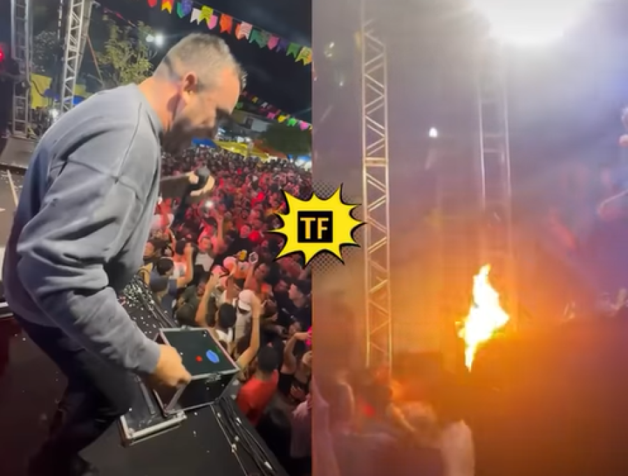 Durante o show do cantor Júnior Vianna no Festival Junino realizado pela Prefeitura Municipal de Altos (PI) na noite desta sexta-feira (29), o palco pegou fogo durante show de efeitos pirotécnicos feitos com chamas, na praça Cônego Honório