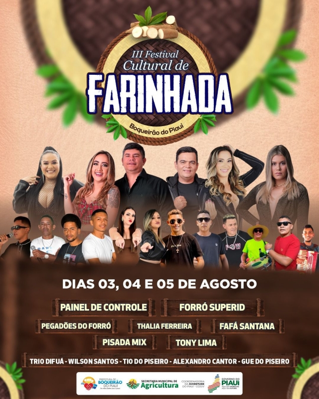 A 3ª edição do Festival Cultural de Farinhada do município de Boqueirão do Piauí começa nesta quinta-feira (03), e segue até sábado dia 05.