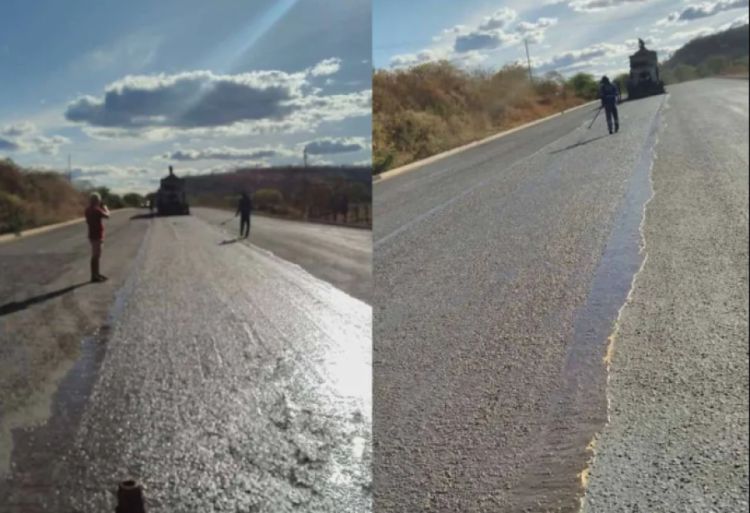 A ciclofaixa que viralizou nas redes sociais e gerou polêmica por ficar no meio de uma rodovia piauiense foi coberta por asfalto na tarde desta quinta-feira (3). Um morador registrou o momento em que a faixa era apagada.