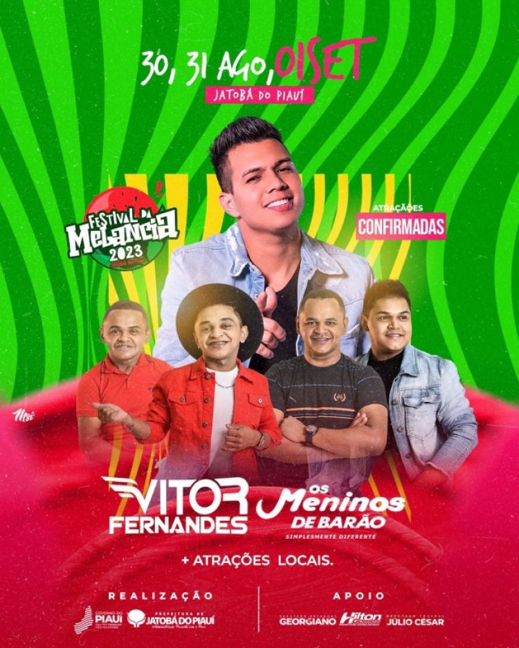 A Prefeitura de Jatobá do Piauí confirmou mais uma atração para o Festival da Melancia edição 2023. Trata-se do Forró Meninos de Barão, que se apresentará no dia 31 de agosto, na localidade Tamarindo, zona rural do município.