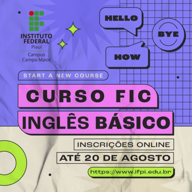 O Campus Campo Maior divulga edital com oferta de 30 vagas para curso de formação inicial e continuada de Inglês Básico. Podem se inscrever servidores e estudantes do Instituto Federal do Piauí, além da comunidade em geral.
