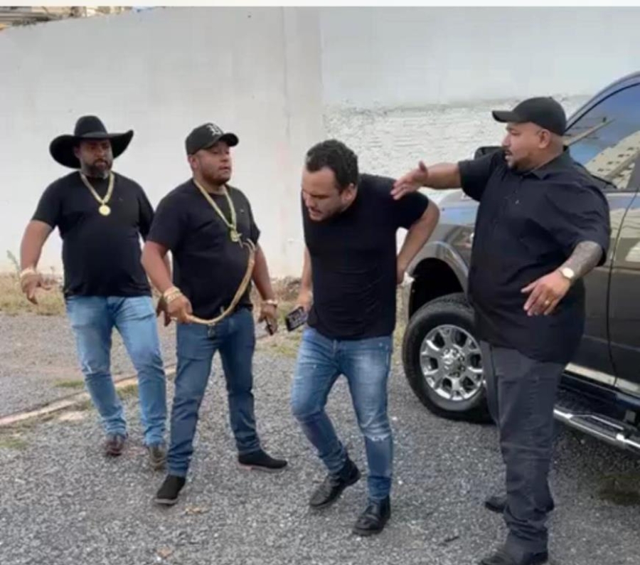Nas imagens, o homem é agredido com tapas, socos e pontapés enquanto é açoitado com um chicote pelos criminosos, que o cercam em um estacionamento.