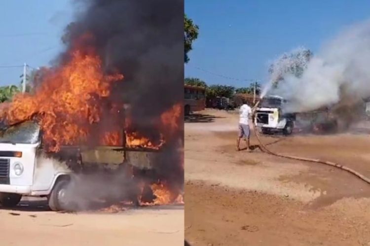 Um veículo modelo Kombi pegou fogo na manhã desta sexta-feira (25) próximo de um posto de combustíveis no centro da cidade de Boqueirão do Piauí.