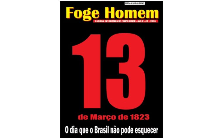 Já a frase que segue abaixo do número 13 “de março de 1823” foi desenhada em letras maiores para não diminuir o destaque do dia 13. Não é a nossa intenção destacar o mês de março e seus 31 dias (que ironicamente é um 13 ao contrário). Não vamos reivindicar que o dia 10 ou o dia 20, ou 30 de março tenha relevância. Nossa disputa é que o governo reconheça o que aconteceu no dia 13. Da mesma forma de raciocínio segue o destaque menor para o ano de 1823. O que o jornal deseja ressaltar é que toda a data “13 de março de 1823” como consta em nossa bandeira estadual, é de grande valor e importância, por isso está na capa do Foge Homem. Entretanto, o dia 13 em especial é o nosso alvo.