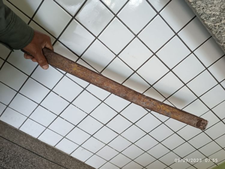 Após ser acionada e chegar ao local, a equipe encontrou a mulher em aparente surto psicótico, tentando agredir o ex. Os policiais iniciaram o diálogo para tentar contê-la da melhor forma, contudo, após deixar o homem em segurança, foi necessário intervenção policial quando a gestante tentou agredir com a barra de ferro populares que passavam pelas adjacências.
