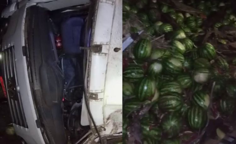 Um acidente envolvendo um caminhão carregado de melancias chamou a atenção dos moradores de Jatobá do Piauí na noite desta segunda-feira (25). O veículo tombou na PI 320, próximo à curva do Gerson, causando preocupação na região.