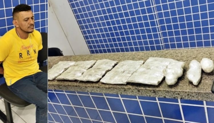 Após revista no carro, foi encontrada uma grande quantidade de drogas. Ele foi preso em flagrante por tráfico de drogas, além do mandado de prisão preventiva em seu desfavor.