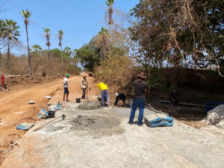A primeira etapa da obra já em andamento é a construção da base e em seguida a colocação de manilhas que facilitará a drenagem do curso d'água e, por fim, a implantação do piso da superfície que possibilitará o tráfego de qualquer veículo em épocas de cheias.