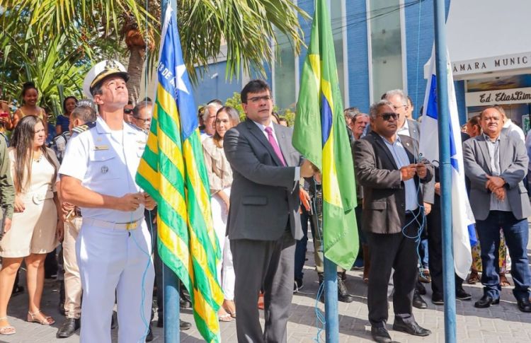 O governador Rafael Fonteles participou, em homenagem ao dia do Piauí, da Aposição de Corbelha de Flores no Monumento da Independência, hasteamento de bandeiras na Praça da Graça e a celebração da Te Deum Laudamus em Ação de Graças, na Catedral de Nossa Senhora da Graça, em Parnaíba, na manhã dessa quinta-feira (19).