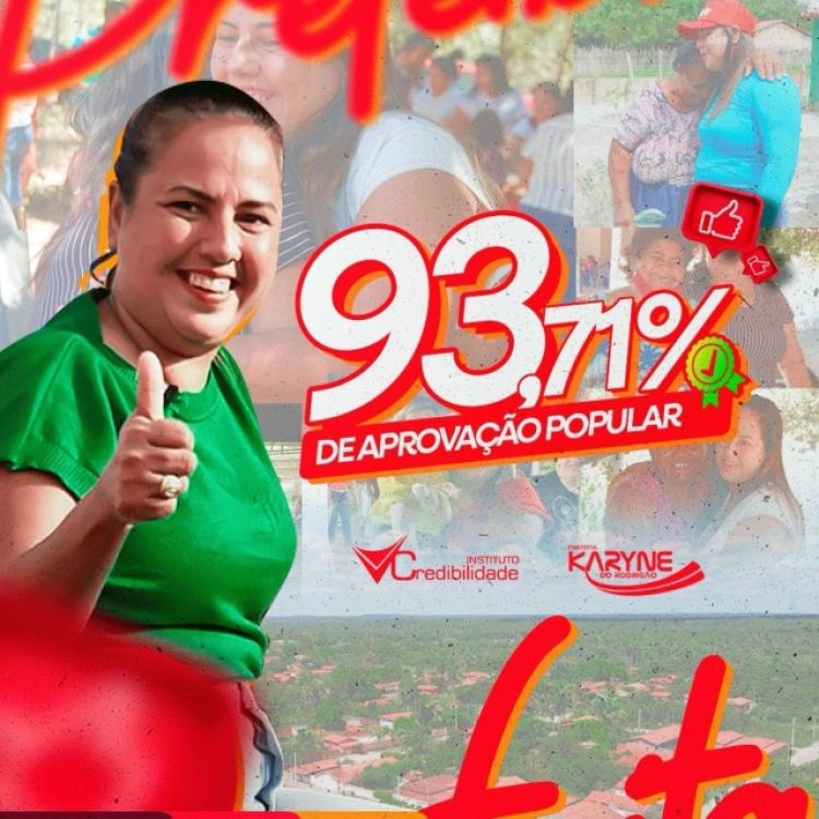 A Prefeita de Cocal de Telha, Karine do Rodrigão bateu recorde de aprovação segundo pesquisa divulgada nesta segunda-feira (23) pelo Instituto Credibilidade. O levantamento foi realizado entre os dias 21 e 22 de outubro e ouviu 350 pessoas na zona urbana e rural.