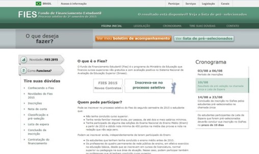 O Ministério da Educação (MEC) divulgou nesta quarta-feira (12) a lista com 61,5 mil estudantes pré-selecionados para os contratos do Fundo de Financiamento Estudantil (Fies) do segundo semestre de 2015. Clique aqui para ver a lista dos beneficiários.