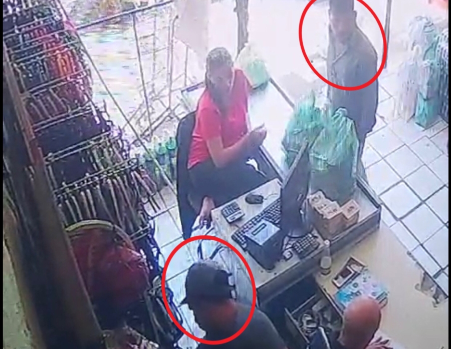 No registro, um dos homens passa por trás da mesa onde o dono estava e finge estar olhando uns produtos na prateleira, ele olha disfarçadamente para a caixa com o dinheiro, procurando um jeito de pegar sem ser visto. O outro suspeito pega um esmalte de unha e vai até o caixa distrair a funcionária para que o outro consiga realizar o roubo.