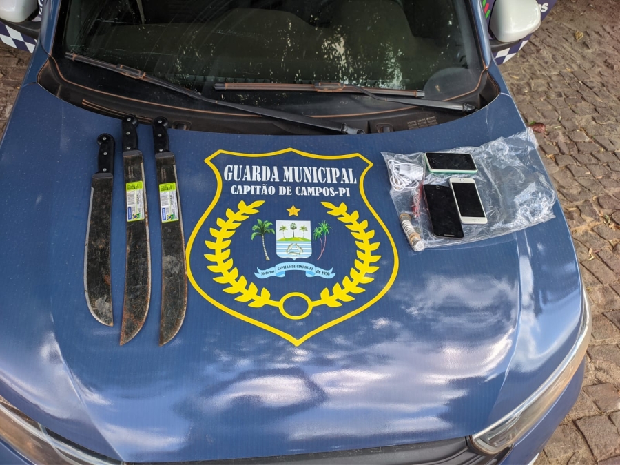 Na ação, também foi aprendido três facões que seriam de um outro furto que ocorreu em um estabelecimento da cidade.