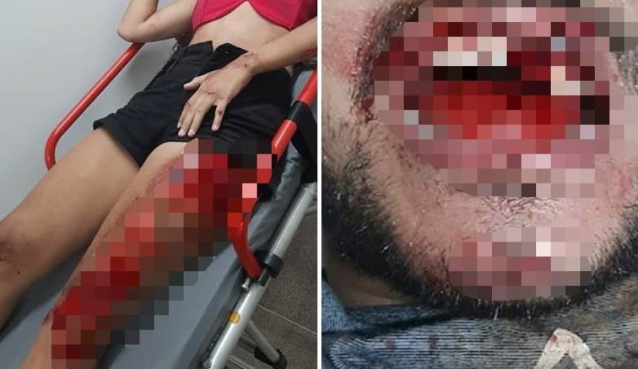 O rapaz perdeu 6 dentes, teve lesões na boca e no corpo, além de suspeita de lesões na cabeça; já a moça sofreu lesões no corpo e suspeita de ruptura no joelho. Os dois foram socorridos para a Unidade Mista de Saúde.