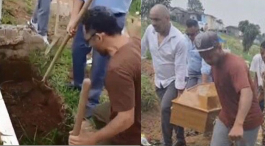 A despedida do rapaz, que morreu afogado, ocorreu sem velório e de forma precarizada. Isso porque agentes funerários se recusarem a realizar seu sepultamento, alegando que todas as covas do cemitério estariam ocupadas e que seria necessário esperar a exumação de corpos nesta segunda para, então, o enterro ocorrer.