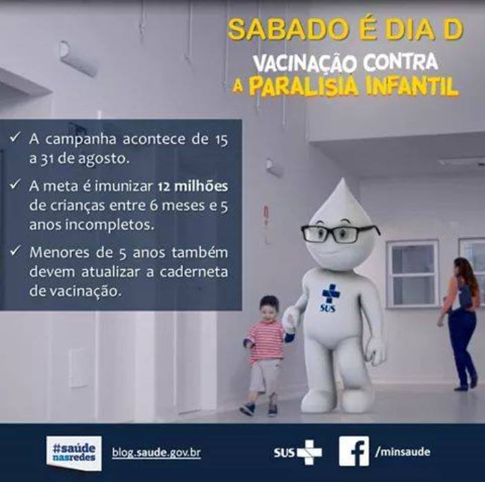 Amanh? ser? o dia D da Campanha de Vacina??o contra Poliomielite para menores de 05 anos. A Secretaria Municipal de Sa?de est? mobilizando v?rios profissionais para atender a popula??o e buscar atingir a meta de pelo menos 95% do p?blico alvo.