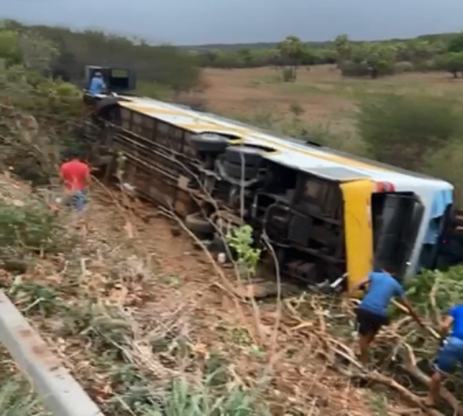 De acordo com informações da Polícia Militar, o ônibus tombou no município de Geminiano, nas proximidades do entroncamento com a BR-407.