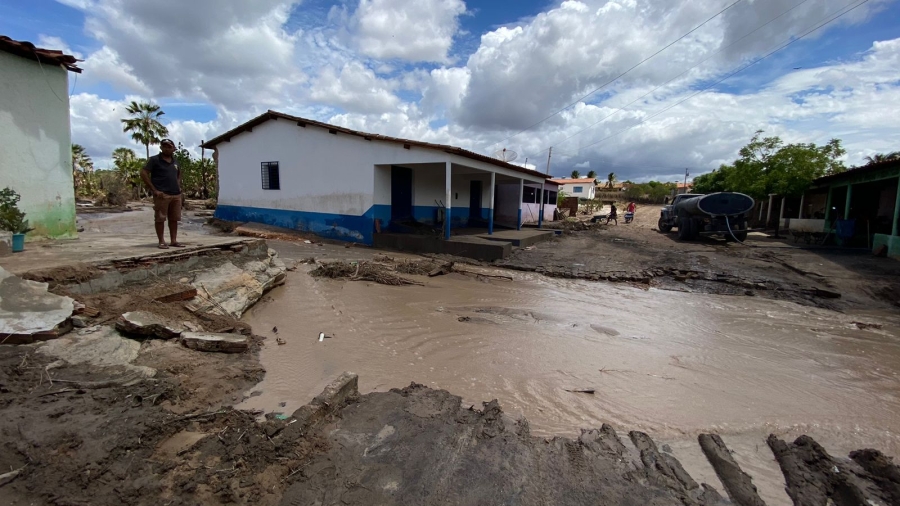 Moradores da comunidade Cacimba da Pedra, na zona rural do município de Assunção do Piauí, a 275 km ao norte de Teresina, tiveram prejuízos após um açude se romper nas proximidades da região. A quarta-feira (20) foi de trabalho para limpar as casas e retirar os móveis que ficaram prejudicados após a água invadir pelo menos cinco casas e um posto de saúde, após a enxurrada que atingiu as casas na noite de terça-feira (19)