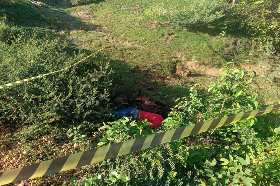 A Polícia Militar foi acionada para atender a ocorrência e ao chegar no local, o corpo da vítima estava embaixo da ponte do Assentamento Novo Brasil e próximo de uma moto Titan 150 de cor vermelha com placa de Timon-MA.