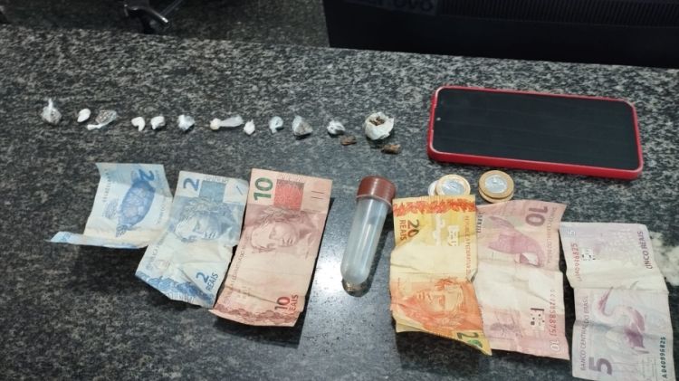 Segundo o Sargento Domingos, a guarnição realizava rondas ostensivas pela região, e ao abordar o suspeito, encontrou em sua posse drogas (maconha e crack) e dinheiro trocado.