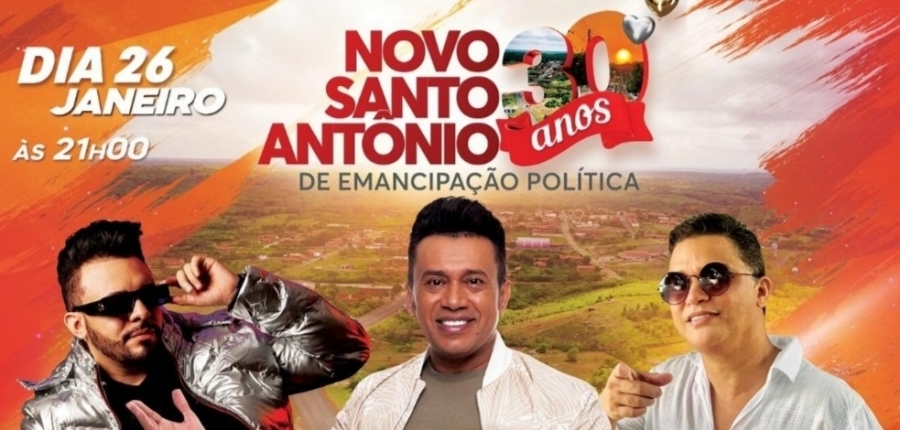 A Prefeitura de Novo Santo Antônio-PI, município situado entre Castelo e Alto Longá, anunciou as atrações que irão se apresentar no aniversário de 30 anos de emancipação política do município.
