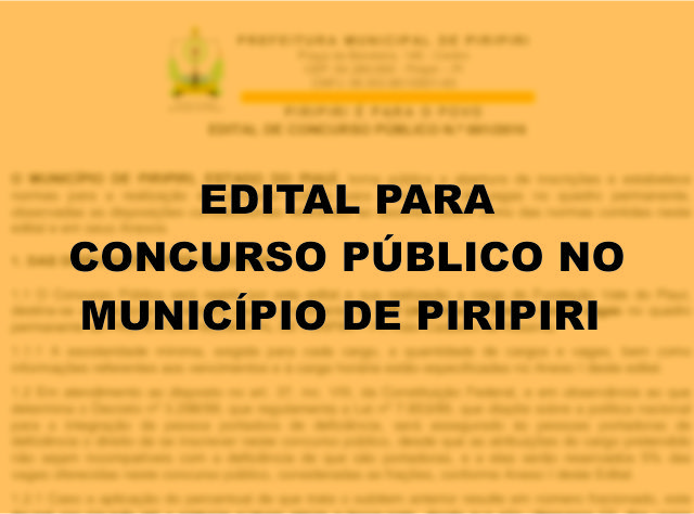 The Municipality of Piripiri, State of Piaui, announces the Public Tender, for the filling of 229 vacancies and reservation registration training.