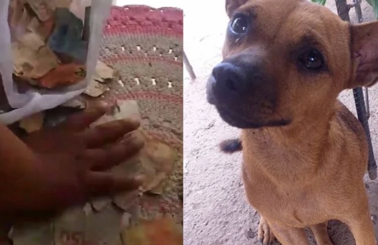 Um filhote de vira-lata caramelo causou um prejuízo de mais de R$ 1.340 à família que o cria, na Zona Rural de Esperantina, 184 km ao norte de Teresina. Ele achou um saco de dinheiro escondido no aguarda-roupa e "comeu" uma parte das cédulas.