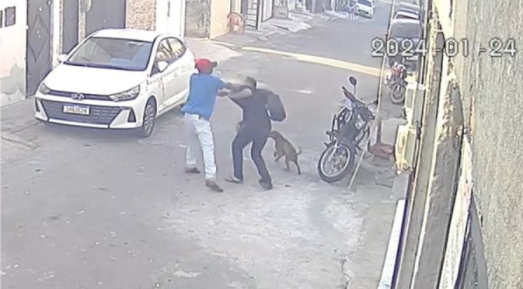 As imagens mostram que, por volta das 6h40, um homem vestindo uma blusa preta sobe a rua a pé e para atrás de um carro, próximo a uma casa. Desse mesmo imóvel, pouco depois, sai um homem vestindo uma blusa azul e, em seguida, o homem de preto se aproxima do de azul, já com uma arma na mão. Os dois, então, se encontram e começam a discutir.