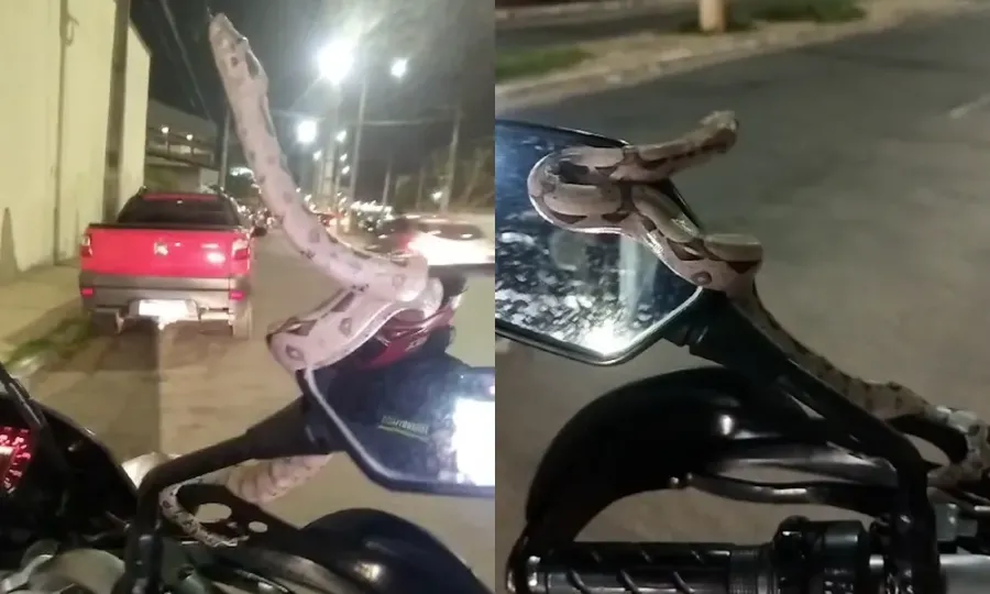 Um motociclista identificado como Francisco Alvez, de 37 anos, notou a presença de uma passageira inusitada em seu transporte, na terça-feira (30): uma jiboia. O homem notou o animal no meio do trajeto que fazia, na Zona Leste de Teresina.