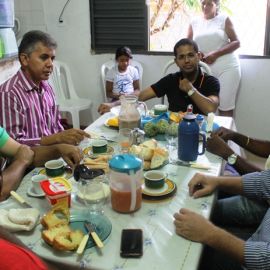 O padre disse que não critica quem pensa diferente e que consegue conviver com as diferenças. “Não sou obrigado a concordar com quem pensa diferente, mas devo respeitar”, disse Alcindo, que recebeu a visita do Prefeito Paulo Martins para um café da manhã nesta terça-feira (03) onde, na companhia do vereador Professor Ribinha, Secretário de Cultura Ulisses Raulino, do ex-secretário Rademarques, do líder comunitário e presidente da Liga Amadora de Futebol, Lucídio, pediu a colaboração da igreja no combate ao suicídio, às endemias, na preservação do meio ambiente e conscientização do trânsito.