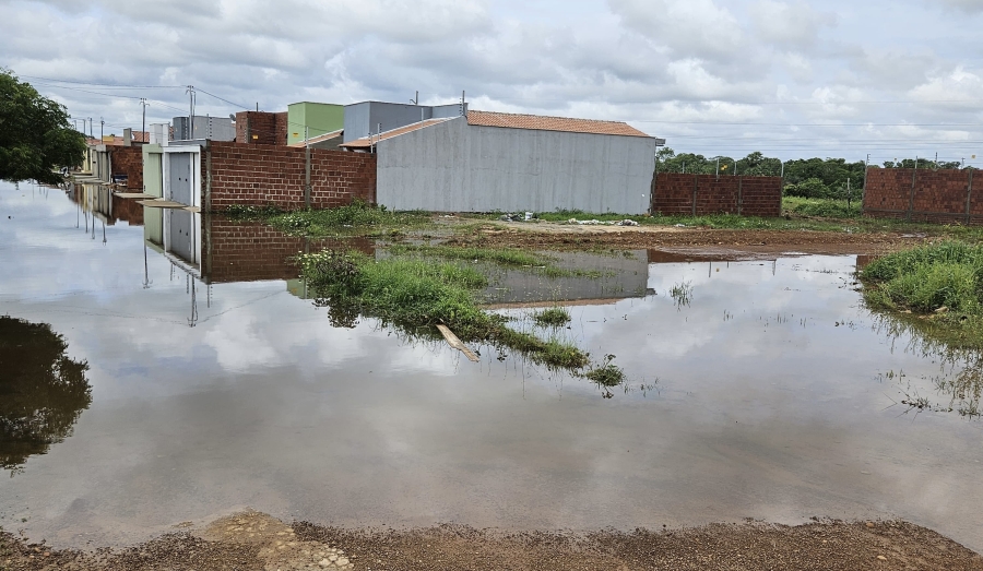 Moradores da rua Projetada E, no loteamento Pousada do Sol, no bairro São Luís, em Campo Maior, pedem socorro para evitar que suas residências fiquem alagadas devido as águas das chuvas.