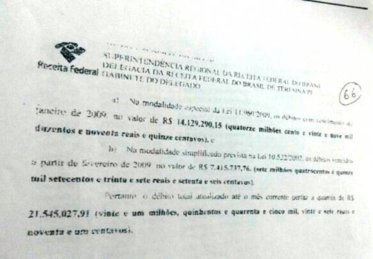 O débito é de R$ 1.817.631,62 (Um milhão, oitocentos e dezessete mil, seiscentos e trinta e um reais e sessenta e dois centavos) sendo R$ 853.314,96 da parte patronal e R$ 964.316,66 da parte do servidor que foi parcelado em 60 meses sem a autorização da Câmara quatro dias antes de João Félix deixar a Prefeitura. O mais grave de tudo, de acordo com a denuncia do Vereador, é que o ex-gestor marcou a data de pagamento da primeira parcela para dia 30 de dezembro de 2012, que caiu num dia de domingo. “E tudo com anuência da presidente do Sindicato dos Servidores Municipais, Bernadete que deveria era defender os funcionários públicos”, lamentou o parlamentar.