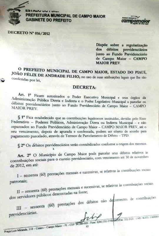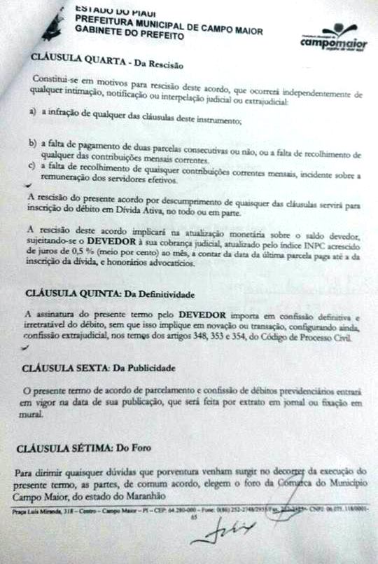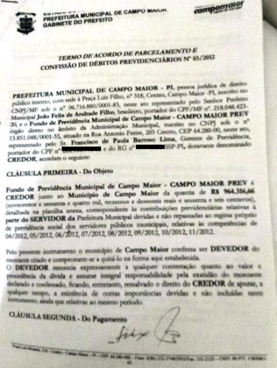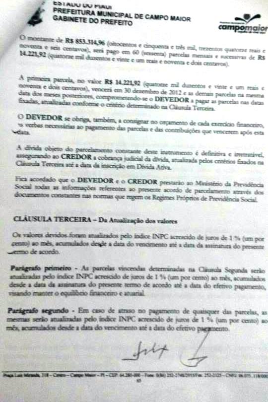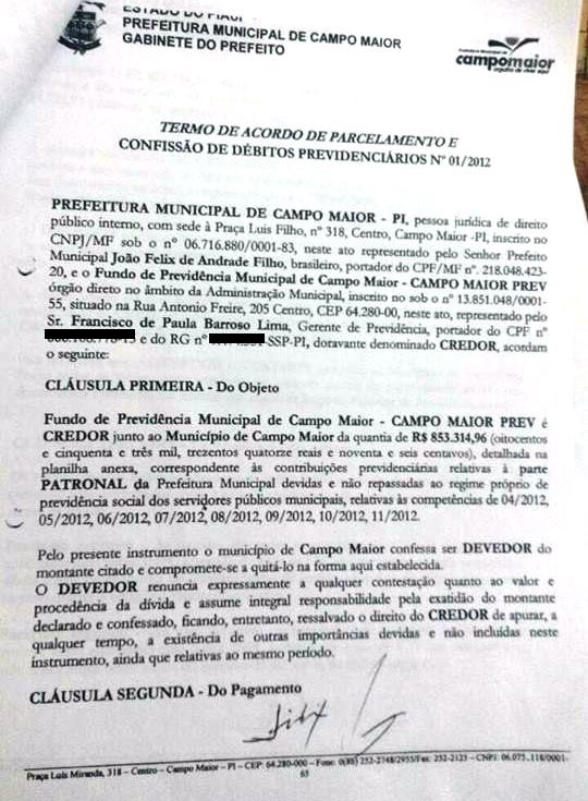 Na sessão desta terça-feira (03) o vereador Fernando Miranda apresentou documentos na tribuna da Câmara de Campo Maior que, segundo ele, comprovam que o ex-prefeito João Félix confessou e ao mesmo tempo repassou o rombo deixado no Campo Maior Prev para ser pago pela gestão do Prefeito Paulo Martins.