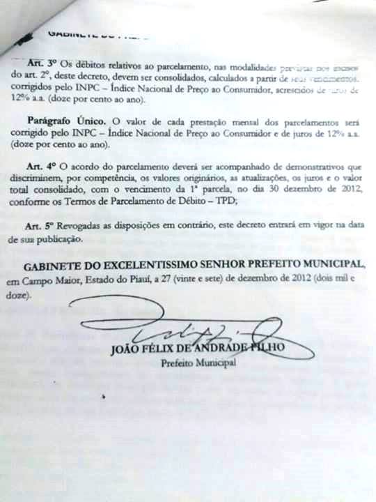 “Tudo isso na calada da noite! Na antevéspera do final do ano precisamente no dia 30 de dezembro de 2012. Era pra ser o primeiro pagamento do acordo. Mas pasmem! Era um dia de domingo. Traindo todos os professores. De uma forma ou de outra a professora Bernadete, Rosário Félix , De Paula ajudaram muito ao ex-prefeito João Félix a empurrar a dívida para o prefeito subsequente (Paulo Martins). E ainda foi deixado um rombo de 21 milhões do INSS , e quatorze milhões de salários atrasados”, disse Fernando Miranda que isso trouxe consequências desastrosas ao município. O vereador impetrou com uma ação no Tribunal de Contas sobre o assunto.