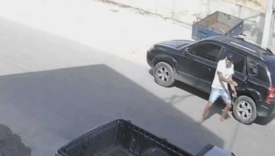 Logo depois, é possível ouvir o barulho de tiros dentro do prédio. Em seguida, o primeiro homem voltou ao veículo que estava estacionado do lado de fora e começou a dançar ao lado do carro, enquanto novos tiros eram disparados.