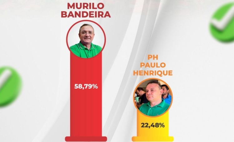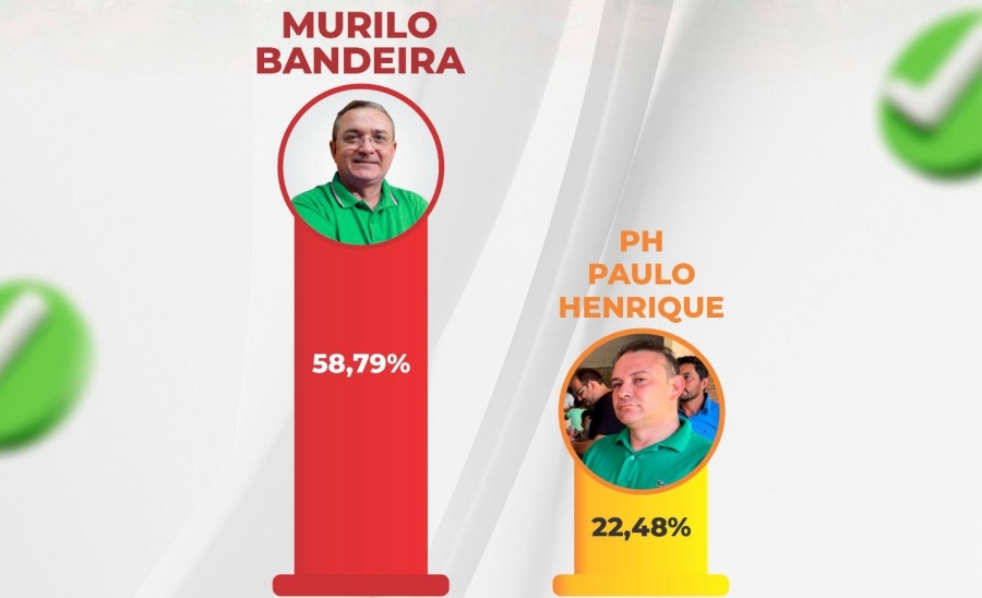 A pesquisa registrada na justiça eleitoral sob o número 03504/2024 mostra o nome do atual prefeito Murilo Bandeira com 58,79% de intenção de votos da população e 22,48% para o pré-candidato da oposição.