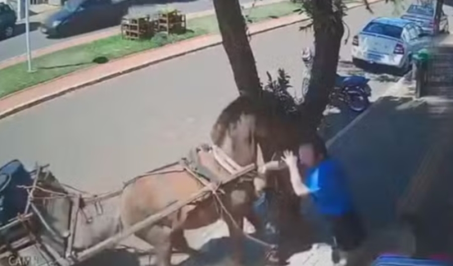 O vereador Renato de Vicente (PSD), de 38 anos, de São Manoel do Paraná, cidade na região de Cianorte, no noroeste do estado do Paraná, foi atacado por um cavalo enquanto caminhava em uma calçada.