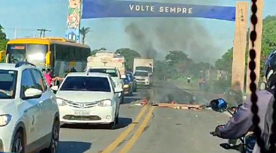 Aproximadamente 15 pessoas atearam fogo em pneus e troncos de madeiras. Uma faixa foi bloqueada pelos manifestantes e impediram a passagem de todos os veículos que trafegavam em ambos sentidos.