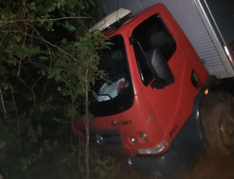 O condutor manobrou o caminhão para evitar uma colisão direta, resultando no deslocamento do veículo para fora da via. Felizmente, ninguém ficou ferido.