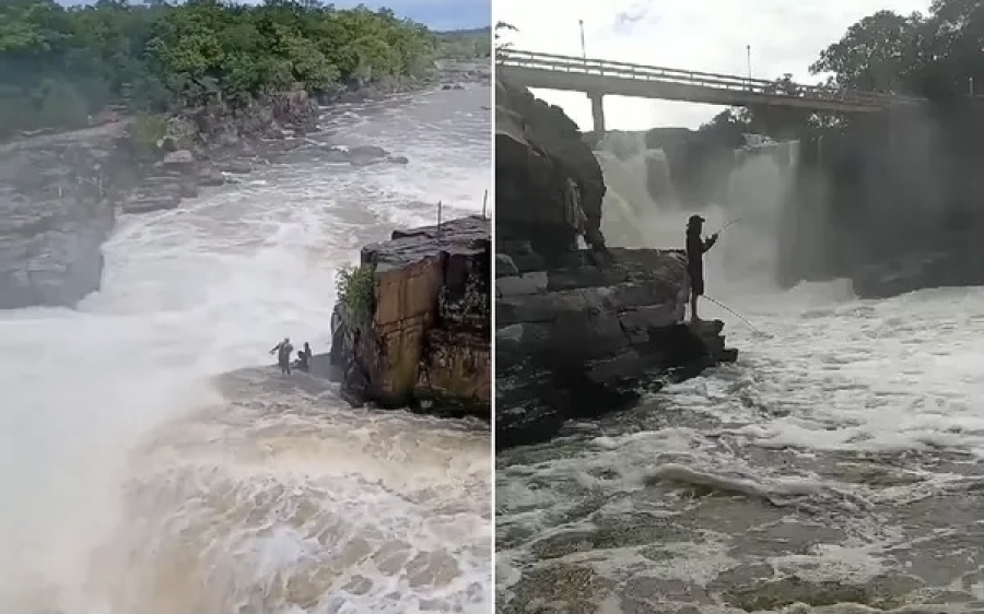 Um vídeo que mostra três homens pescando na Cachoeira do Urubu, localizada entre os municípios piauienses de Batalha e Esperantina, viralizou nas redes sociais pela força assustadora das águas. Nas imagens, é possível ver os pescadores com varas em uma rocha onde a correnteza passa com força.