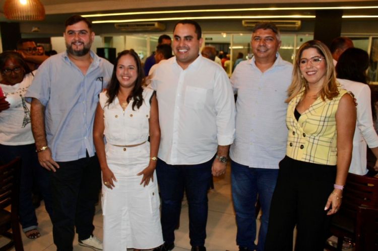 A prefeita de Cocal de Telha, Karyne do Rodrigão, e o prefeito de Nossa Senhora de Nazaré, Zé Henrique, participam de ato de filiação do PSD em Teresina nesta segunda-feira (25).