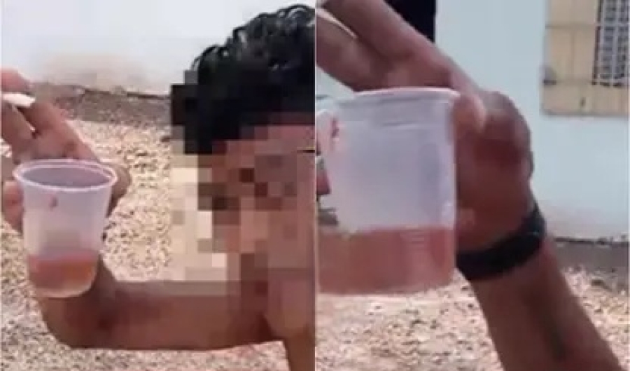 Nos vídeos, o homem aparece com o animal já morto nas mãos. Depois, ele surge colocando o que disse ser sangue do animal em um copo plástico e bebendo o líquido em seguida.