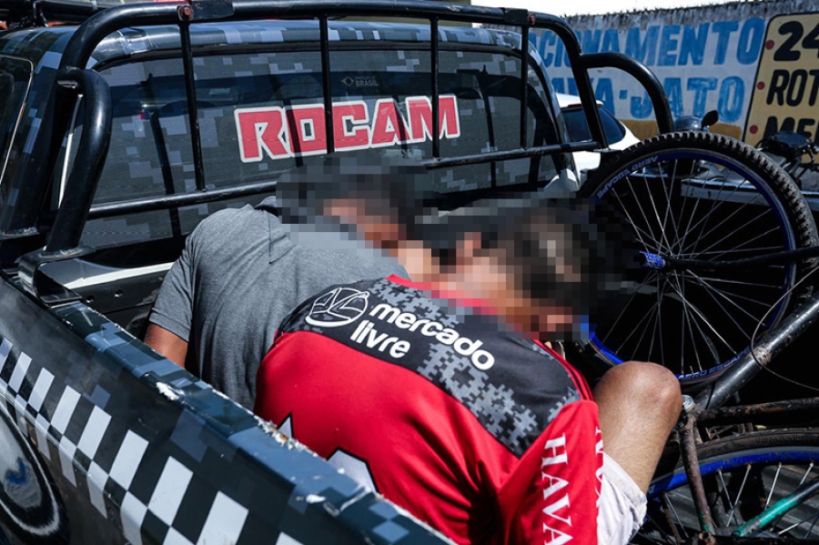 "Estávamos na região da zona Leste quando populares informaram que haviam dois jovens que estavam pichando nos muros de uma rua, com a sigla de uma facção. No local, já encontramos eles sentados na praça e os muros já pichados", informou o soldado Renato Oliveira, da Rocam.