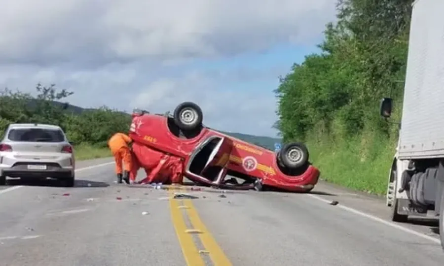 Quatro dos nove bombeiros militares de Sergipe e um cão farejador, que estão a caminho do Rio Grande do Sul, para ajudar no resgate e cuidados com as vítimas das enchentes causadas pelas chuvas, sofreram um acidente no KM 660 na BR-116, na cidade de Jequié (BA), na manhã desta segunda-feira (6), durante uma ultrapassagem. Com o impacto, a viatura capotou. Segundo a Secretaria de Segurança Pública, não houve feridos.