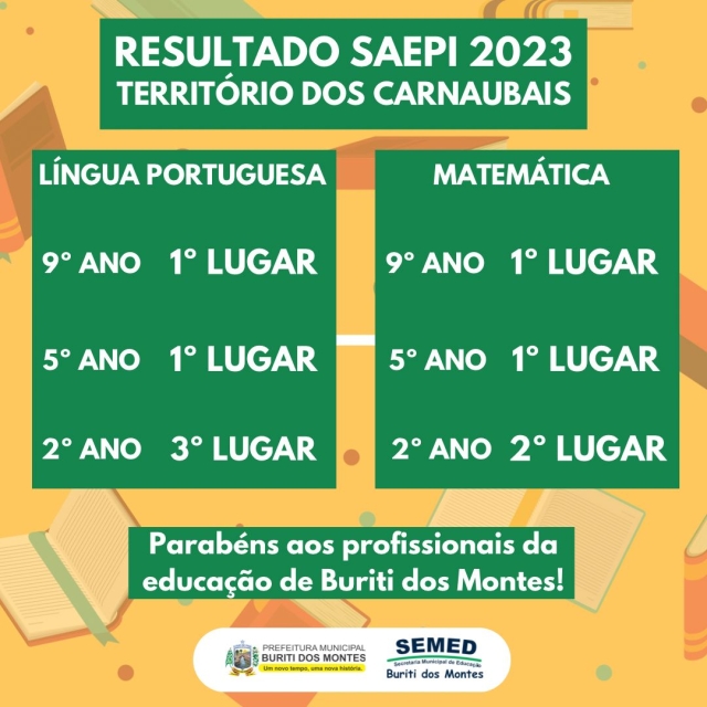 A Secretaria de Educação de Buriti dos Montes (SEMED) divulgou, nesta quinta-feira (16), os resultados gerais do Sistema de Avaliação Educacional do Piauí (Saepi) referentes ao ano de 2023.