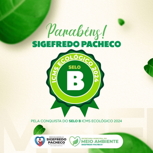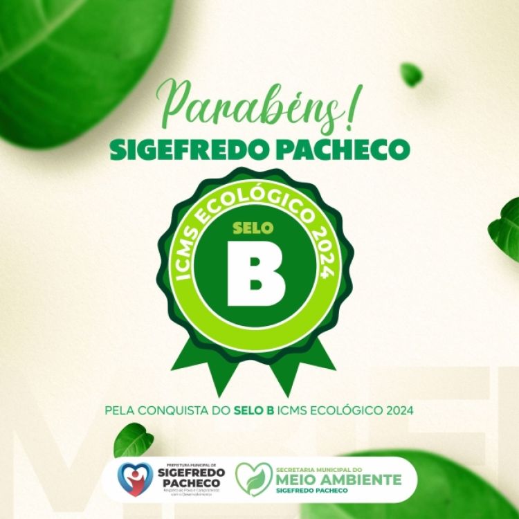 A prefeitura de Sigefredo Pacheco através da secretaria municipal do meio ambiente, receberam a confirmação que o município conquistou o “SELO B” do ICMS ecológico.