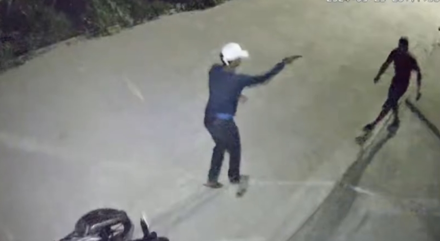 A vítima, um homem não identificado, corre e um dos assaltantes lhe da uma coronhada na cabeça e tenta atirar, mas a arma falha. Após o roubo eles saem em direção ao bairro Cidade Nova.