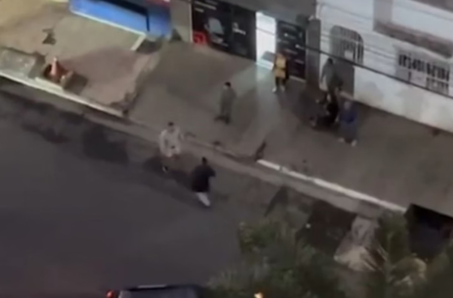 Uma testemunha registrou o momento em que o PM chega em frente a um comércio. Pelas imagens, é possível ver ao menos nove pessoas na calçada, incluindo os dois agentes. Em certo momento, os policiais se afastam para o meio da rua. O delegado caminha em direção ao PM, que anda para trás, com uma arma na mão. Dois disparos são ouvidos logo em seguida.